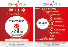 紅色底面之台灣好行站牌,正面顯示目前所在站名及下一站,背面顯示沿線經過站名