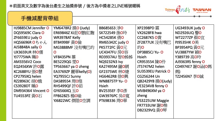 「台灣好行環島計畫」搭好行抽好康第一階段已於10月31日截止,以下為第一次抽獎之中獎者,趕快來看看您是不是那位幸運兒!若這一次沒有中獎不用氣餒喔,您的抽獎券可累積到第二次抽獎繼續抽喔!