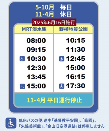バリアフリーバスは、基督教平安園、筠園、朱銘美術館、金山空港跡には停まりません