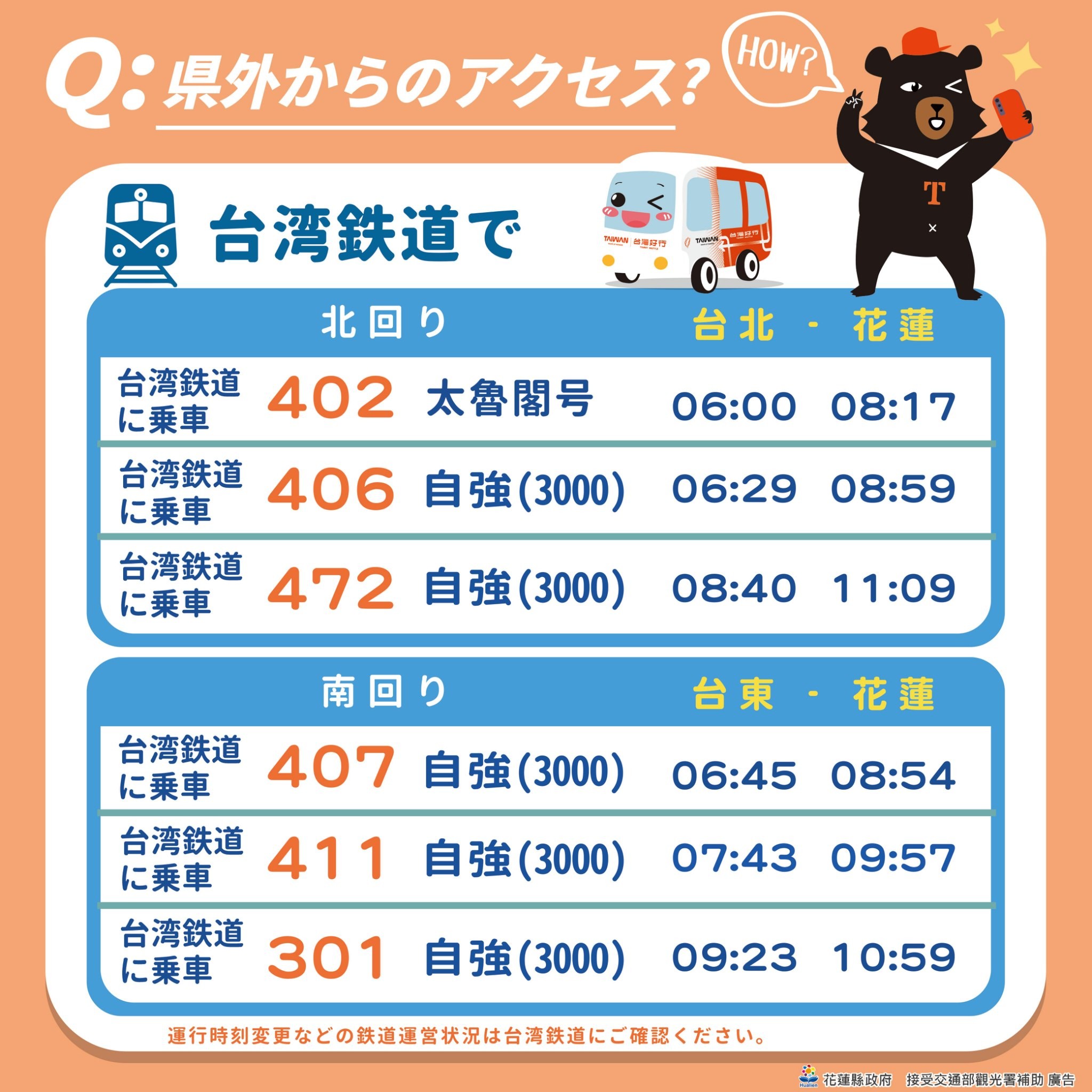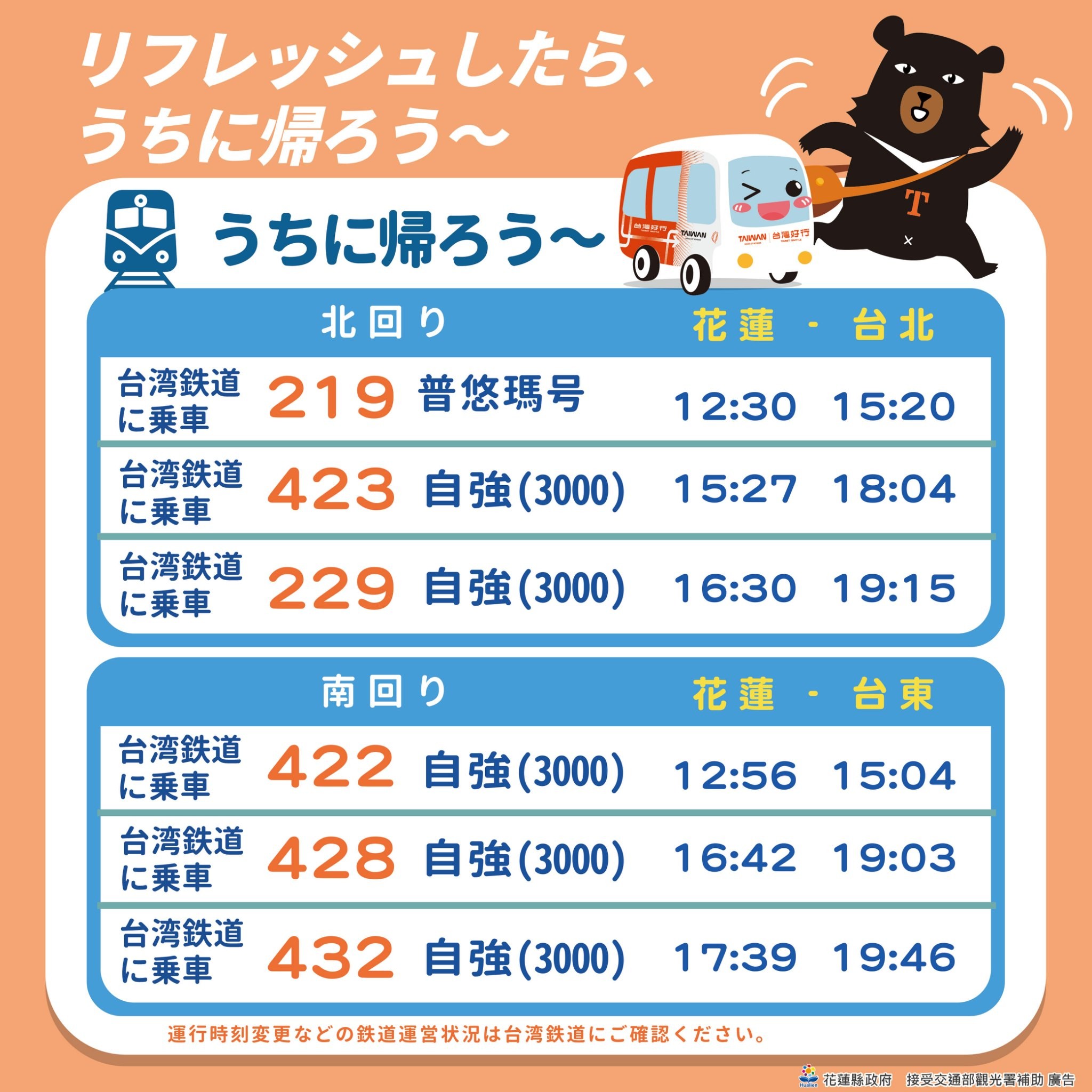 本路線は、花蓮県の主要交通拠点「花蓮バスターミナル」を起点とし、「太魯閣遊客中心(タロコビジターセンター)」を終点としています。途中、将軍府、石彫博物館、花蓮観光漁港、七星潭、新城老街、新城天主堂、達基力芸術文化基地などの観光スポットに停車します。多様な文化、エコツーリズム、歴史文化などを一路線で充実した観光スポットを巡ることができます。花蓮北部をのんびりと心ゆくまでお楽しみください。