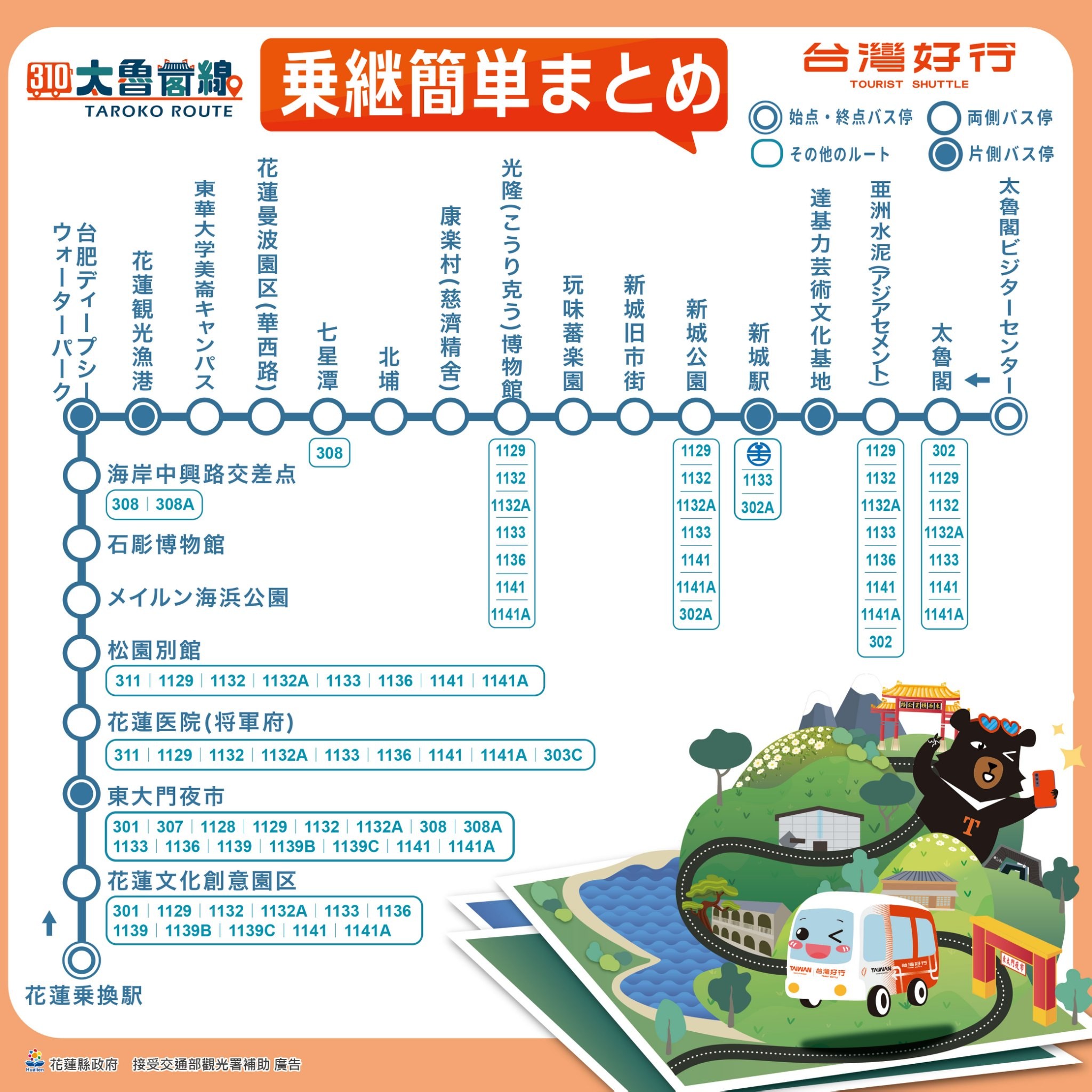 お急ぎの場合は、302新城駅-天祥市内客運の路線をご利用ください( 1日/2日券は310路線には使用できません)。