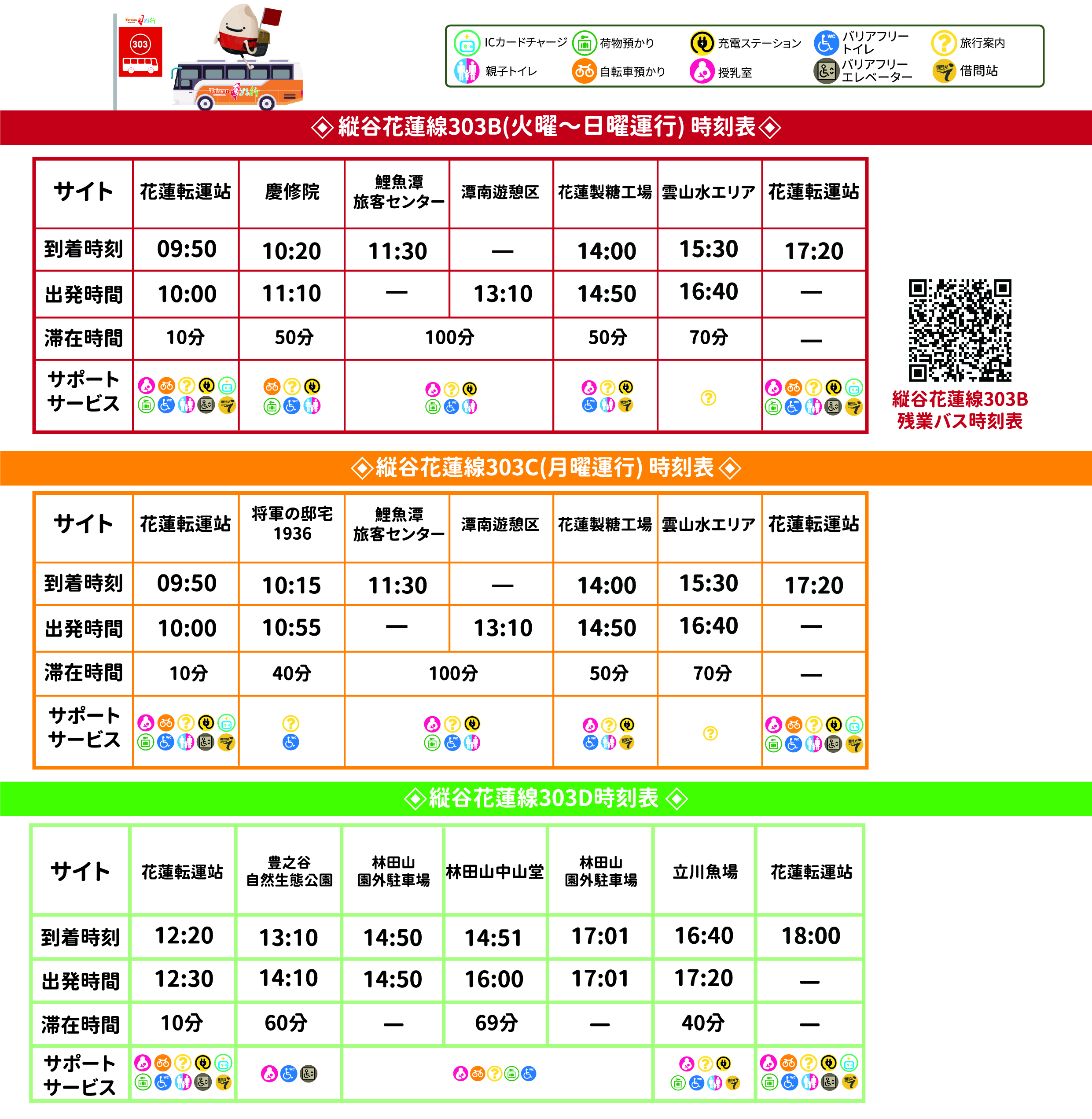 南北同じ停留所:花蓮バスターミナル、豊之谷自然生態公園、林田山林業文化園区、立川漁場