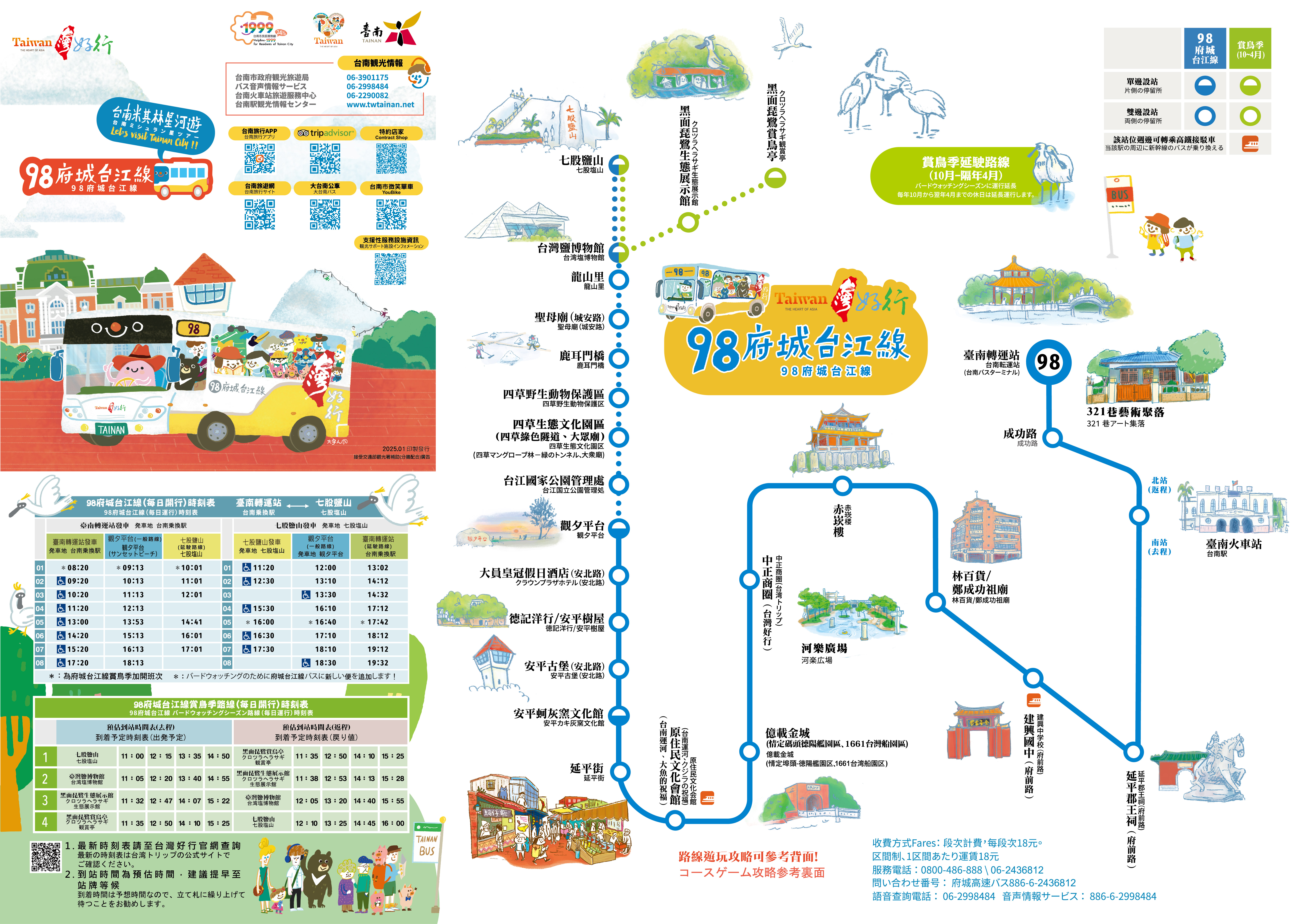 バス運行案内:886-6-2998484#9 窓口営業時間:07:00~20:00